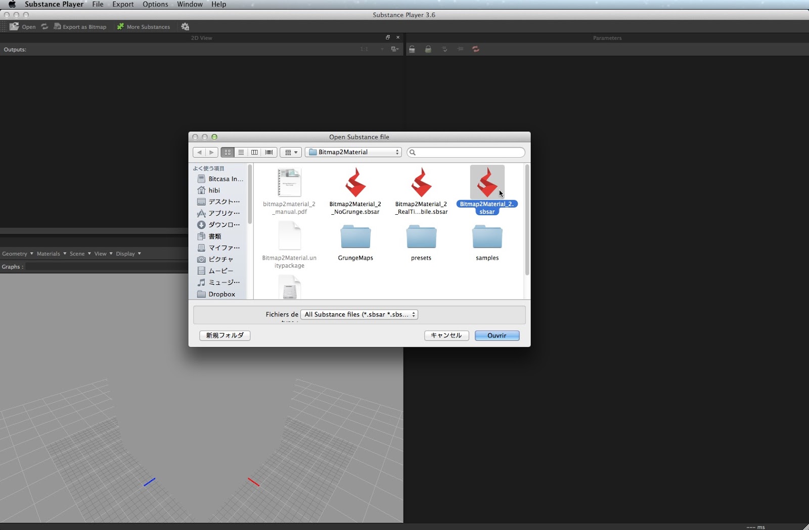 Bitmap2Materialは、SubstancePlayer上またはSubstance for MODO 701上でBitmap2Materialを使うためのファイルみたいなものと思ってください。