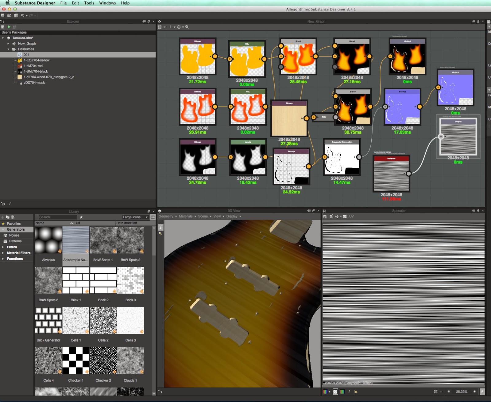 Substance Designerには、Generatorsと言う沢山のプロシージャルテクスチャがありますので、このGeneratorsを組み合わせて細かい擦り傷を作成します。