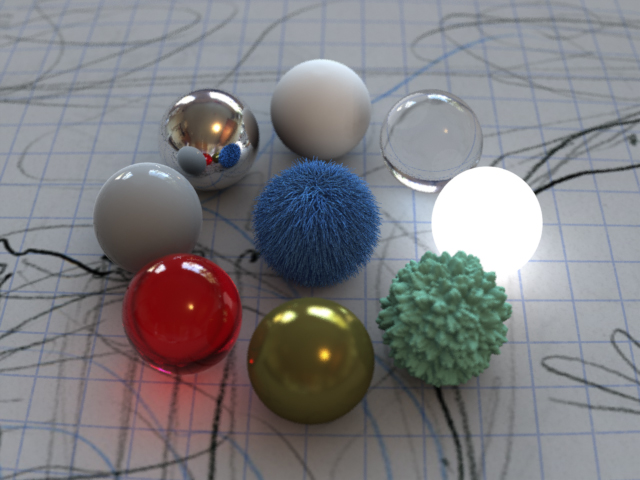 そこで、いい機会なのでmodoのサンプルファイル「9Spheres.lxo」でレンダリング時間を計測してみました。