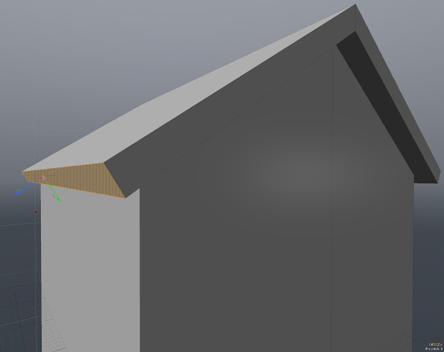 例えば、こういう屋根の軒を延ばしたい場合は、アクションセンターの「選択」を使います。選択した屋根の厚み部分が屋根の勾配と同じ方向なので、「選択」でOKです。