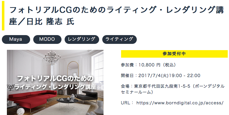 フォトリアルCGのためのライティング・レンダリング講座をやります。